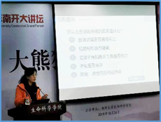 教务处负责人首先就线上线下混合式“金课”的背景、课程建设方式、项目申报、结项要求等向大家进行了说明。化学学院教师杨光明、公共计算机基础教学部教师赵宏、公共英语教学部教师唐磊分别从“线上教学应用国家精品在线开放课程+线下教学方式改革”“线上教学应用自主建设在线课程+线下教学方式改革”“利用智慧教学工具多方式改造传统课堂”三种混合式课程的建设方式分享了自己的经验。