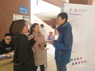 教务处工作人员针对转专业、双辅修、选课、推免等若干关注度较高的问题与学生进行了面对面交流,解除同学们心中的困惑和疑虑,同时听取了学生的意见和建议。活动过程中,工作人员通过宣传资料、现场互动等方式向同学们介绍了教务处近年来的特色工作,如智慧书院、学业指导、“知行合一”服务学习等,师生互动,气氛热烈。