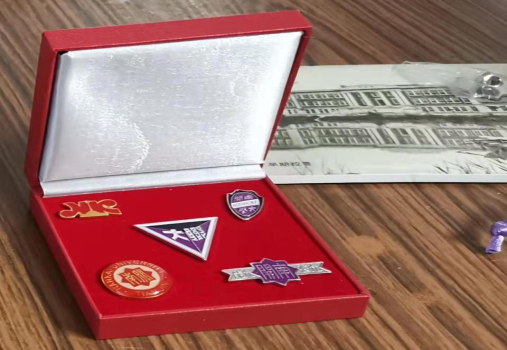 老人收藏的校徽