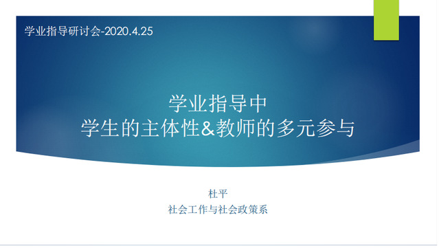杜平老师从学业指导过程中的学生主体性和教师的多元参与两个方面进行了分析和研究。杜老师表示,在师生互动中,学业指导教师要根据学生实际情况扮演好倾听者、合作者等不同的角色,要相信学生的主体性,注重个别化原则,进而帮助学生获得积极体验,不断提升自我效能感。