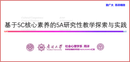 会议由教学团队张文忠教授主持。物理科学学院薄方老师、哲学院魏犇群老师、电子信息与光学工程学院孙桂玲老师和周恩来政府管理学院周详老师分别作了“《光学》课程科研反哺教学探索及应用”“元伦理学前沿问题的研究性教学转化及实践”“高水平科研成果助力‘课程+竞赛’”和“基于5C核心素养的5A研究性教学探索与实践”的项目进展汇报。