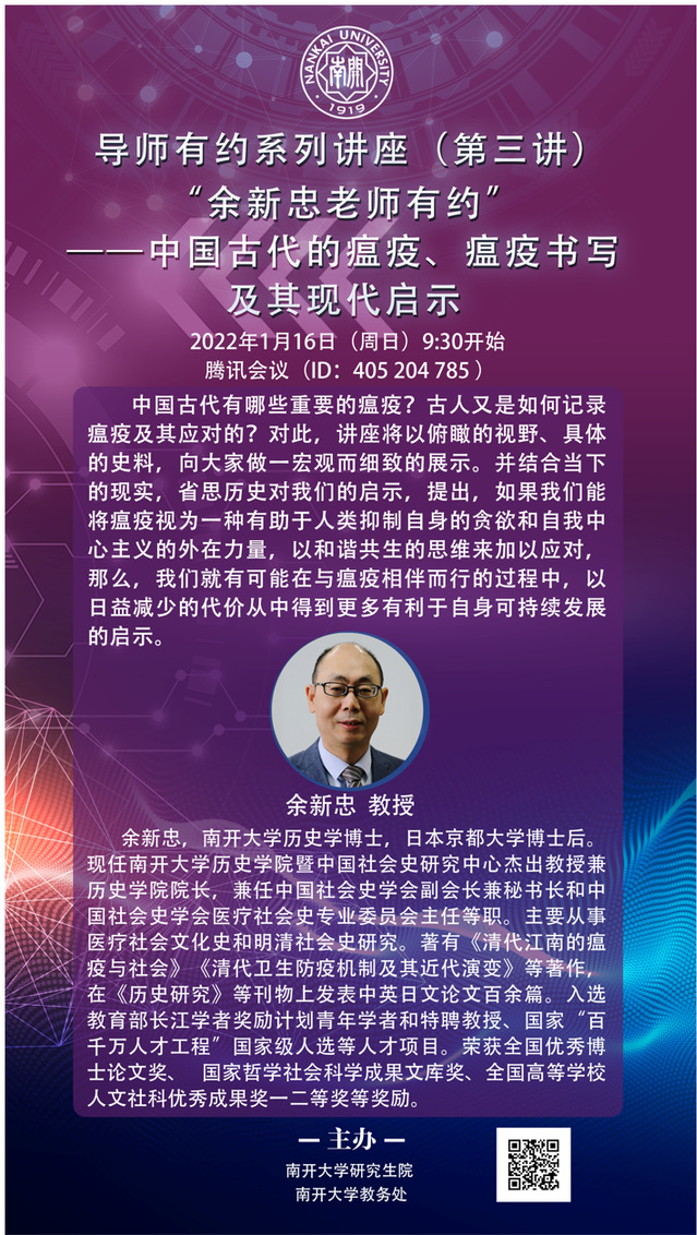 导师有约系列讲座(三)——余新忠老师有约——中国古代的瘟疫、瘟疫书写及其现代启示