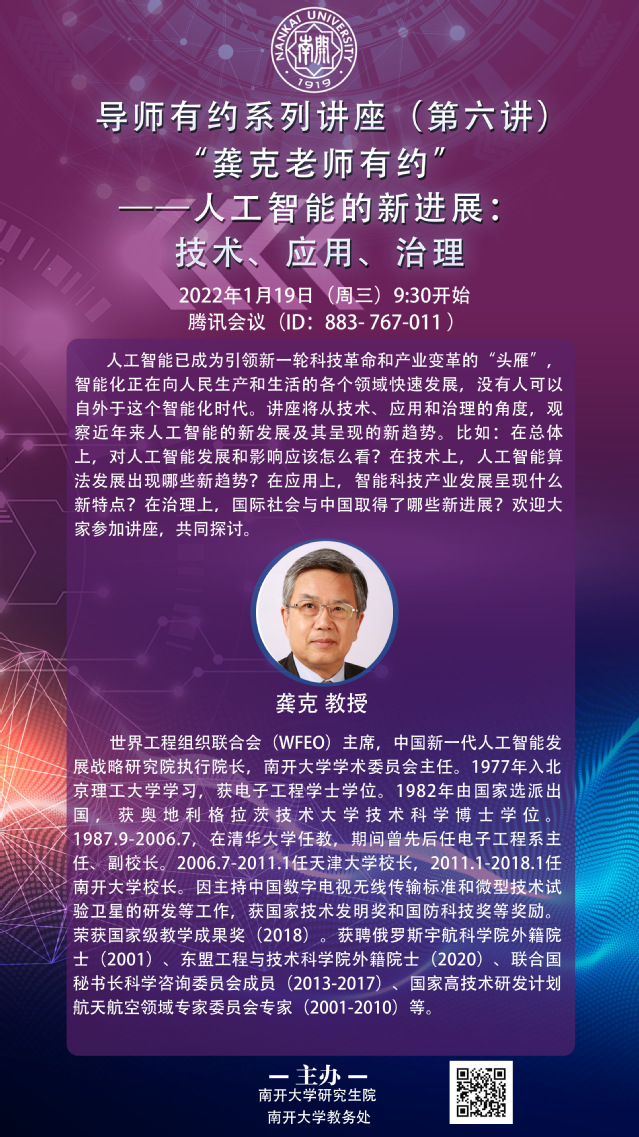 导师有约系列讲座(六)——龚克老师——人工智能的新发展:技术、应用、治理
