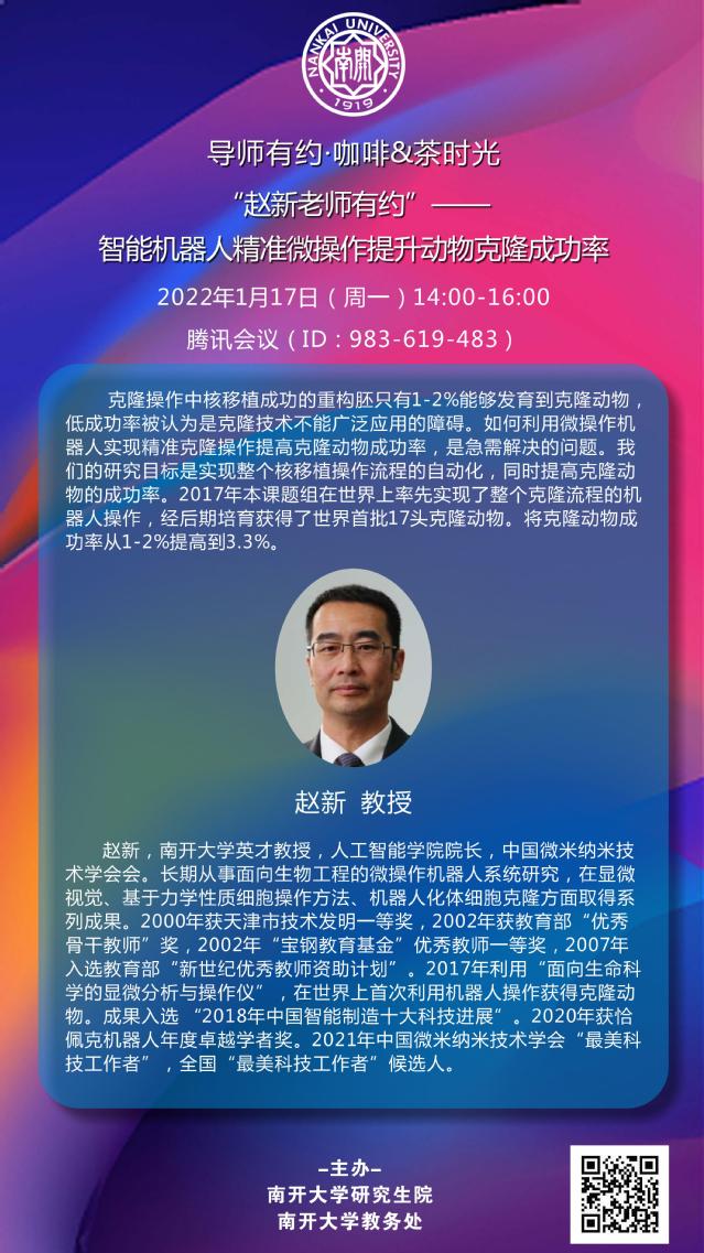 "赵新老师有约”——智能机器人精准微操作提升动物克隆成功率