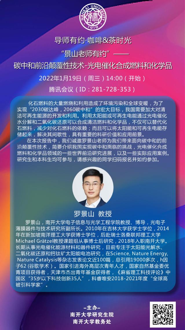 “景山老师有约”——碳中和前沿颠覆性技术-光电催化合成燃料和化学品